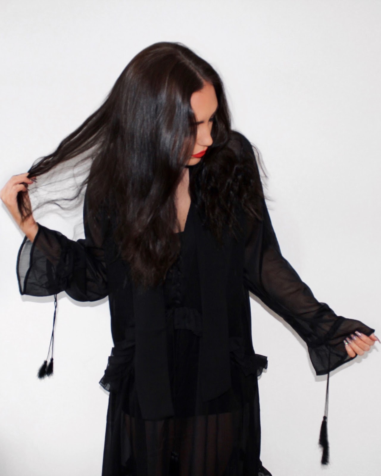 Here is a new dress, a special gift I got for Christmas. I first saw this dress in the H&M store on a mannequin in London during Fashion Week and I fell in love. It has such a gypsy vibe to it and I love all the frills and hassle detailing. I also love how versatile this dress is, you can wear it over a dress during the evening time, as it is very sheer, but you can also wear it with jeans, a bandeau and boots for the day time.