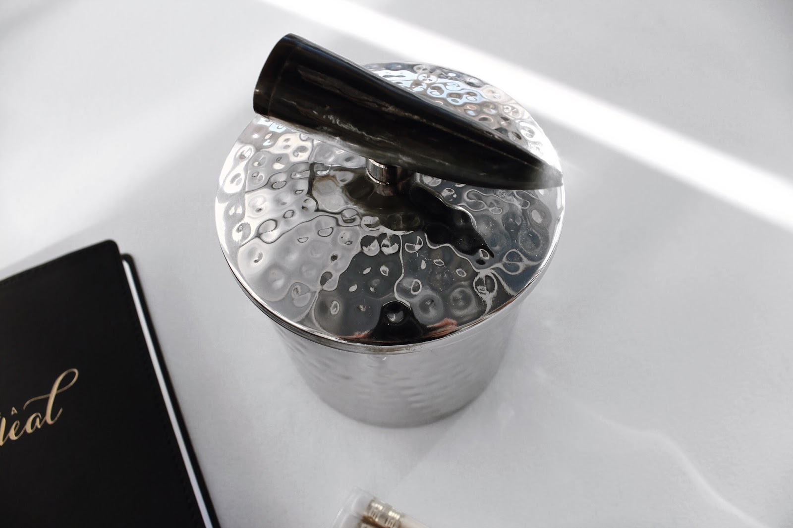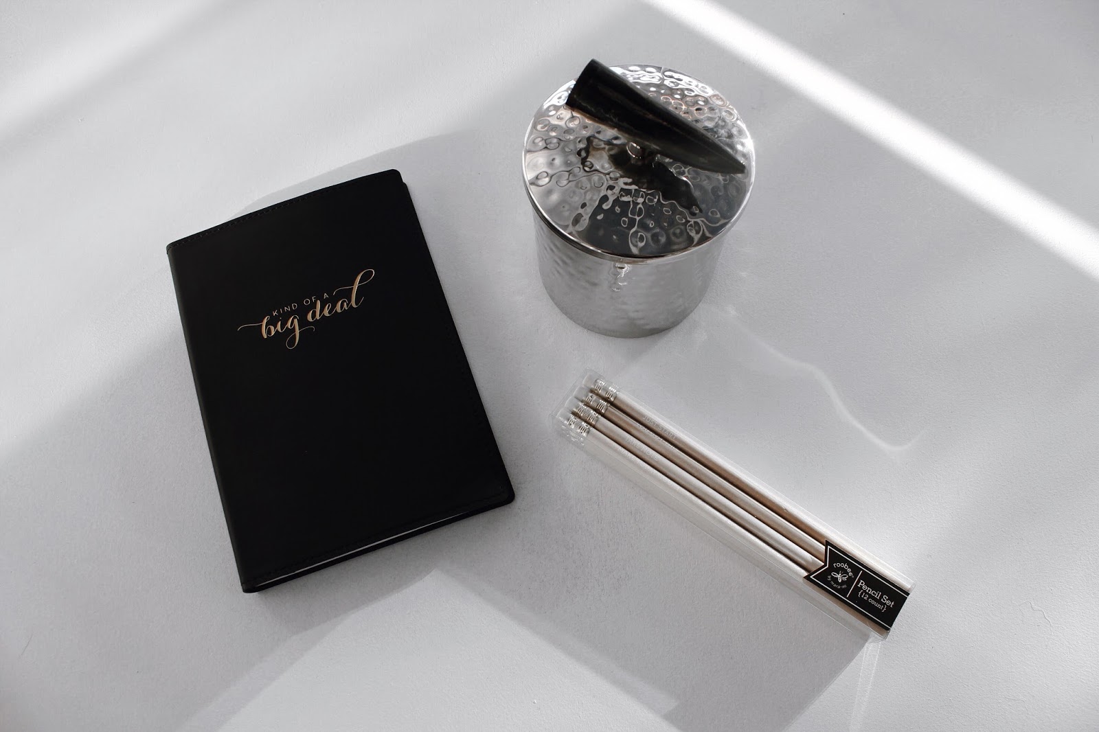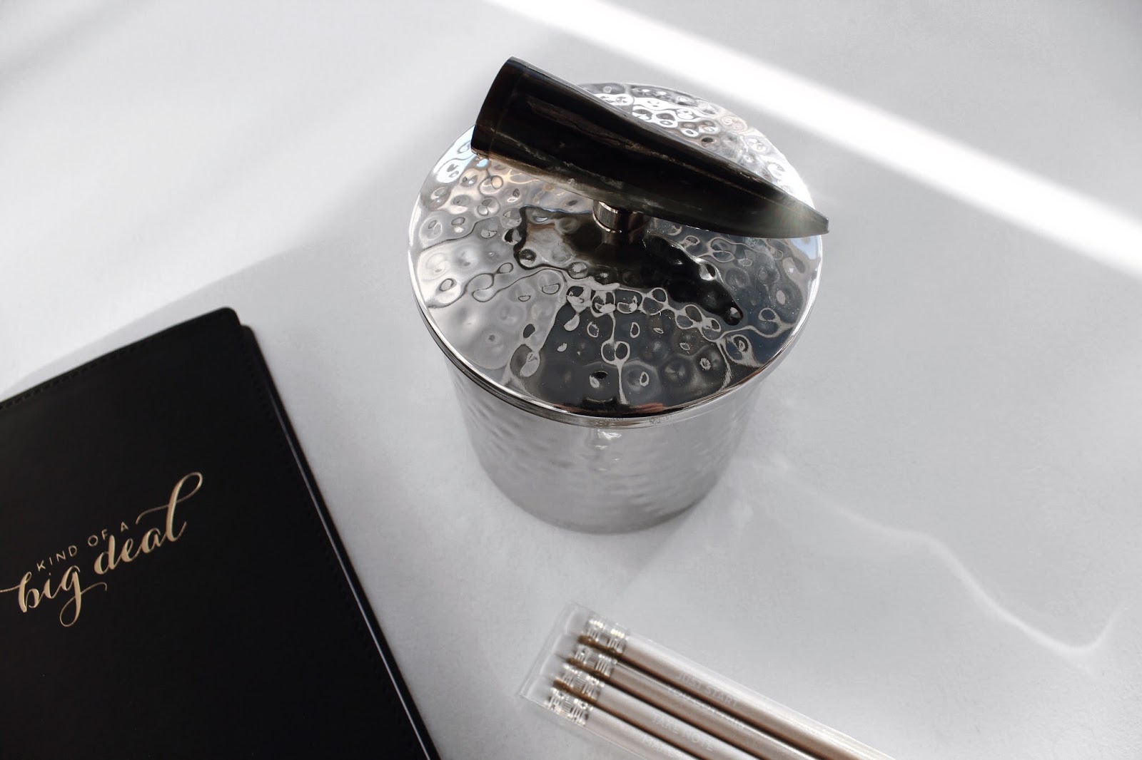 I chose this beautiful black notebook to go in my collection of notepads! Then I picked up these wooden pencils with little engravings on, which would make a perfect gift, and you guys know how much I love my home decor, I love any form of box or trinket and I fell in love with this silver one, with a unique bone handle.